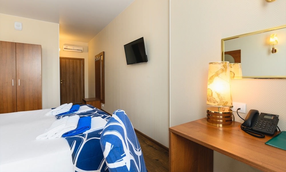 Однокомнатный номер площадью 22 квадратных метра с двумя основными местами и одним дополнительным.